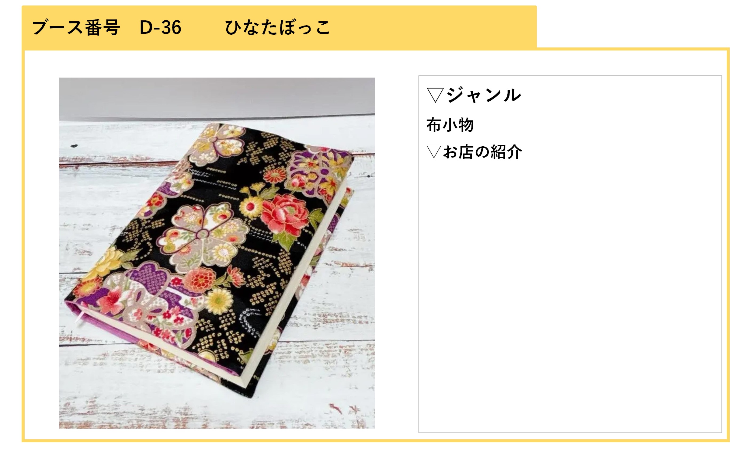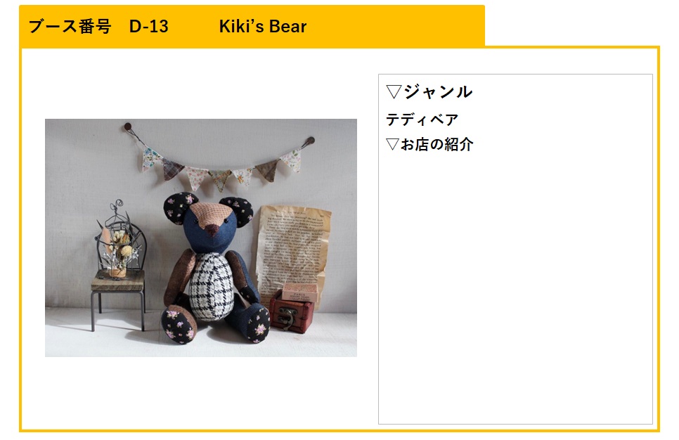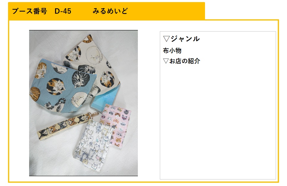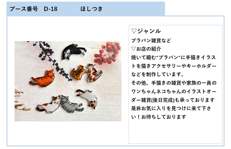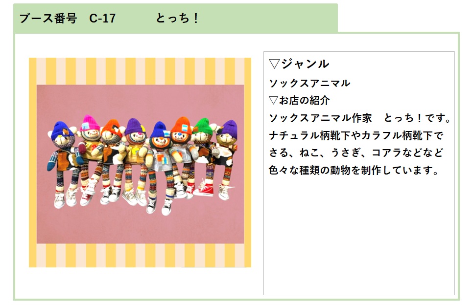 6月1日(日)出店者一覧 1F A・B・Kブース