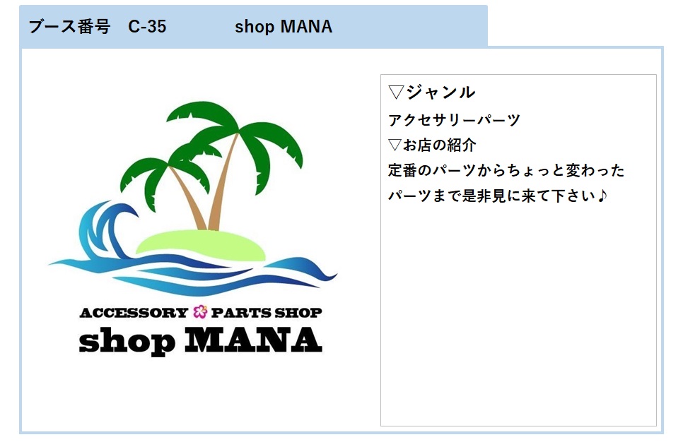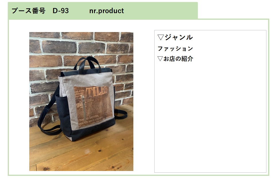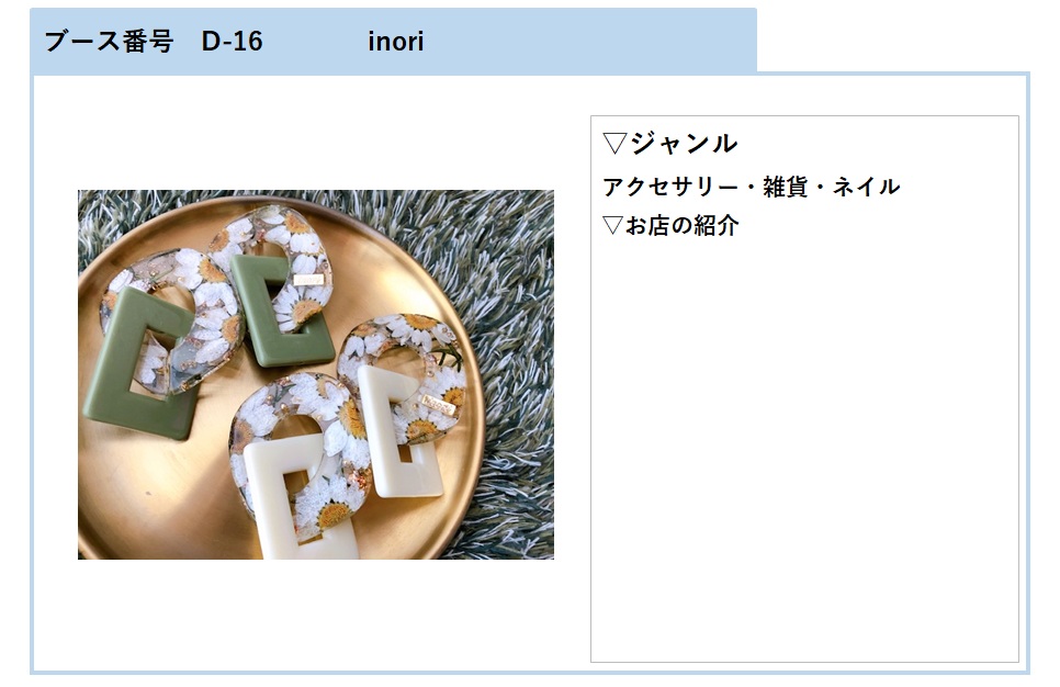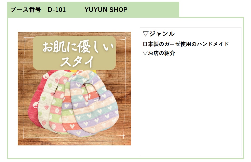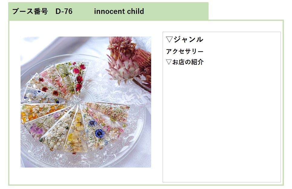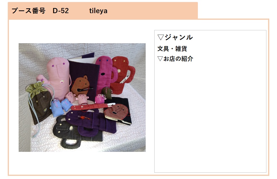 6月1日(日)出店者一覧 1F A・B・Kブース