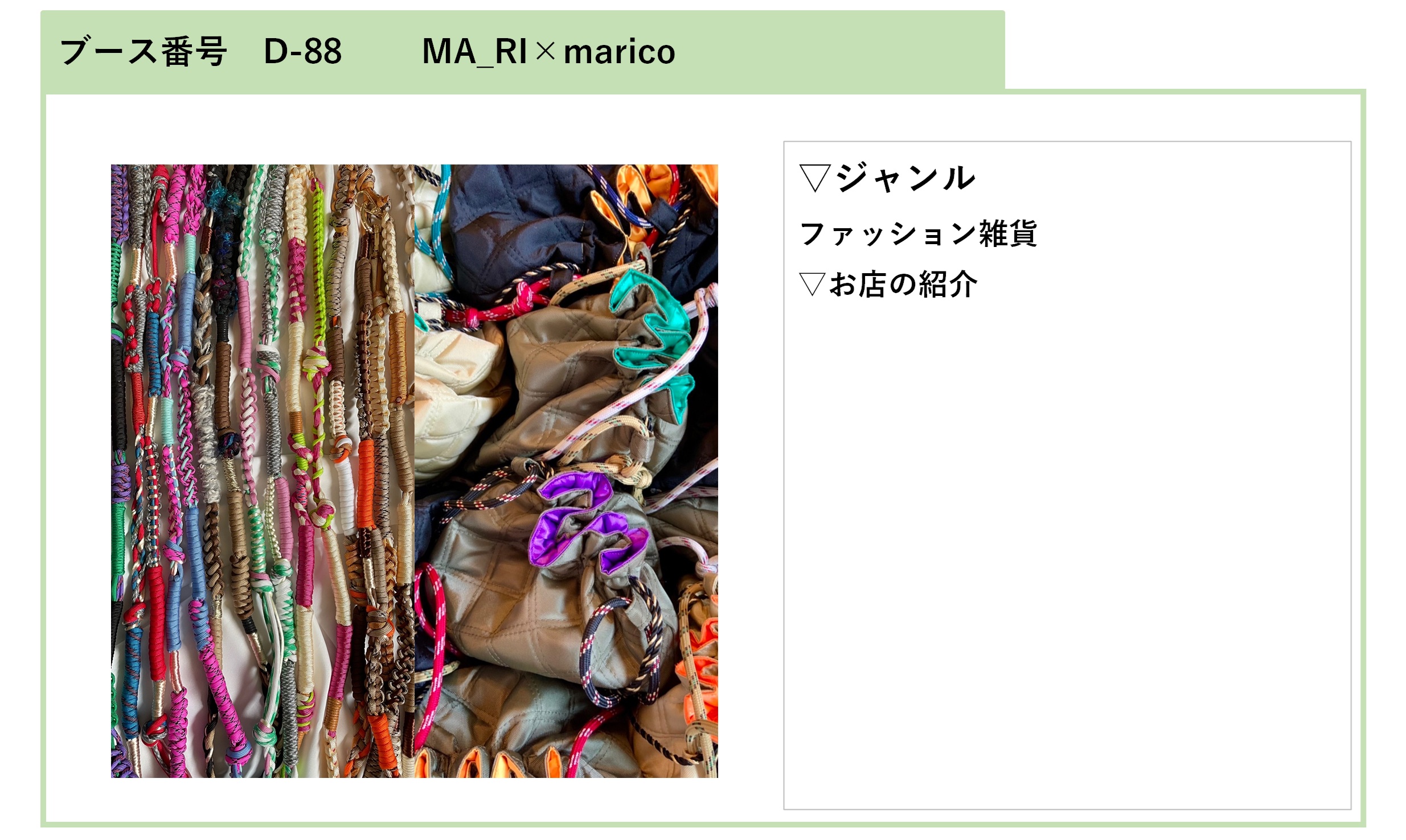 5月31日(土)出店者一覧 1F A・B・Kブース